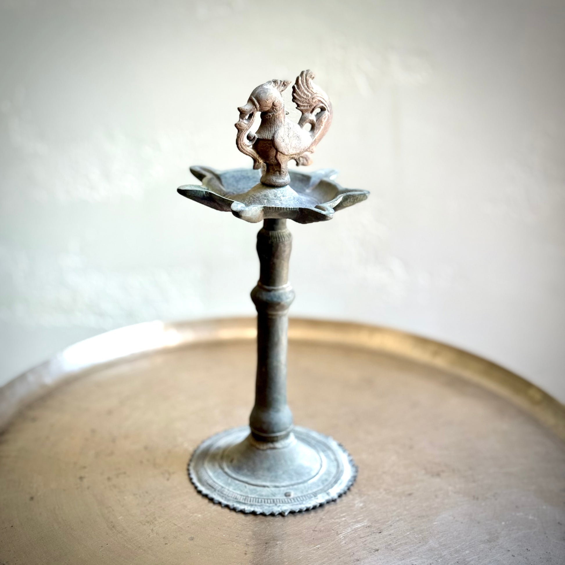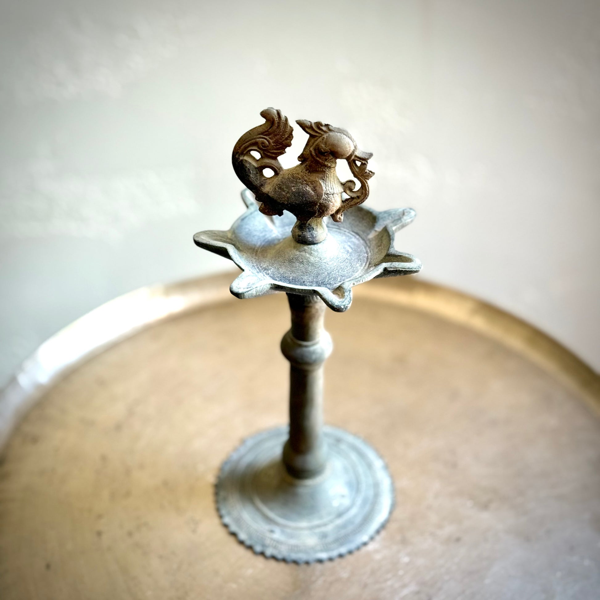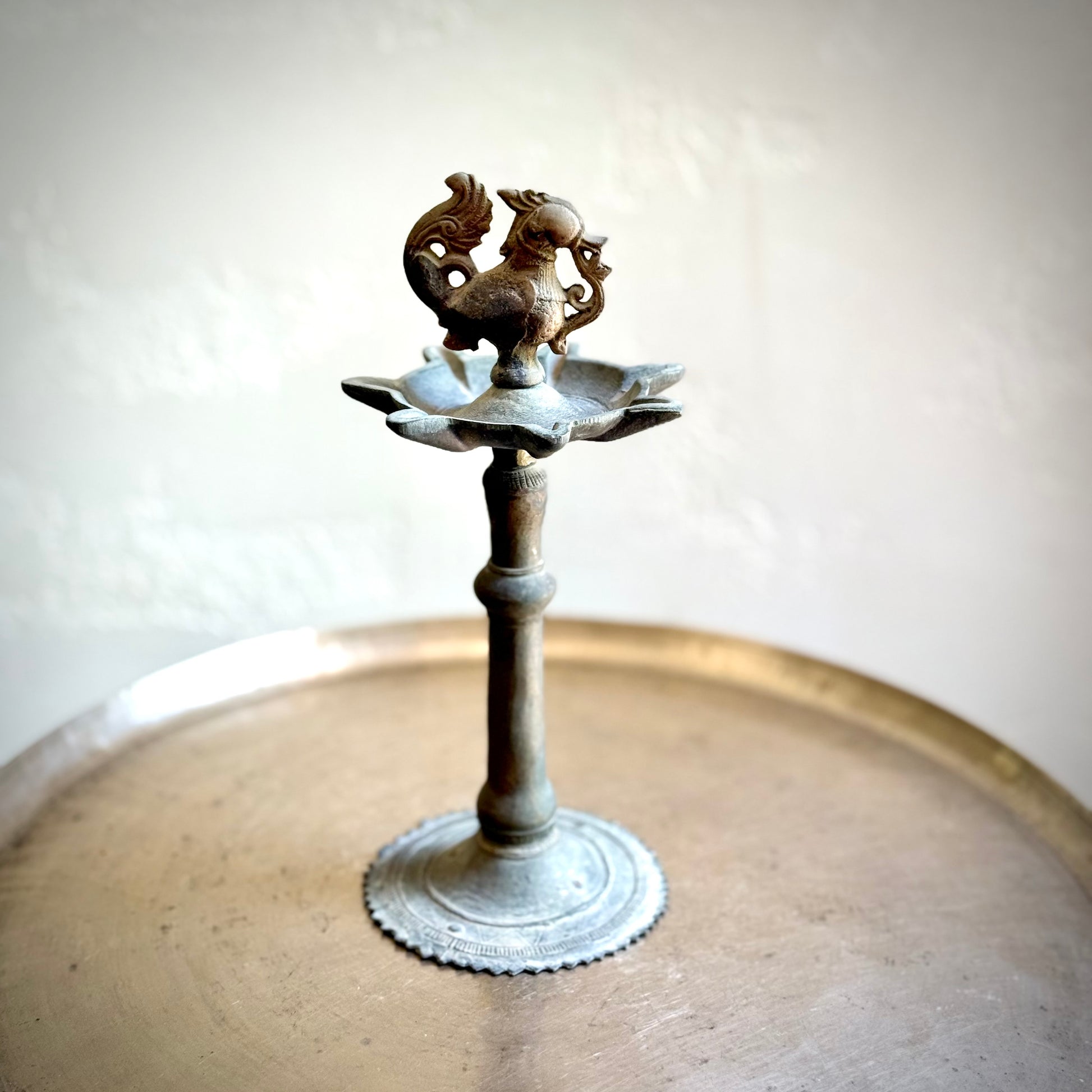 A timeless piece of South Indian artistry, this 7-wick Annapakshi vilakku features a majestic celestial bird perched above a seven-spouted flower like base. The Annapakshi — revered for its purity, grace, and ability to separate truth from illusion — adds a layer of symbolic richness to this functional yet ornamental lamp.
