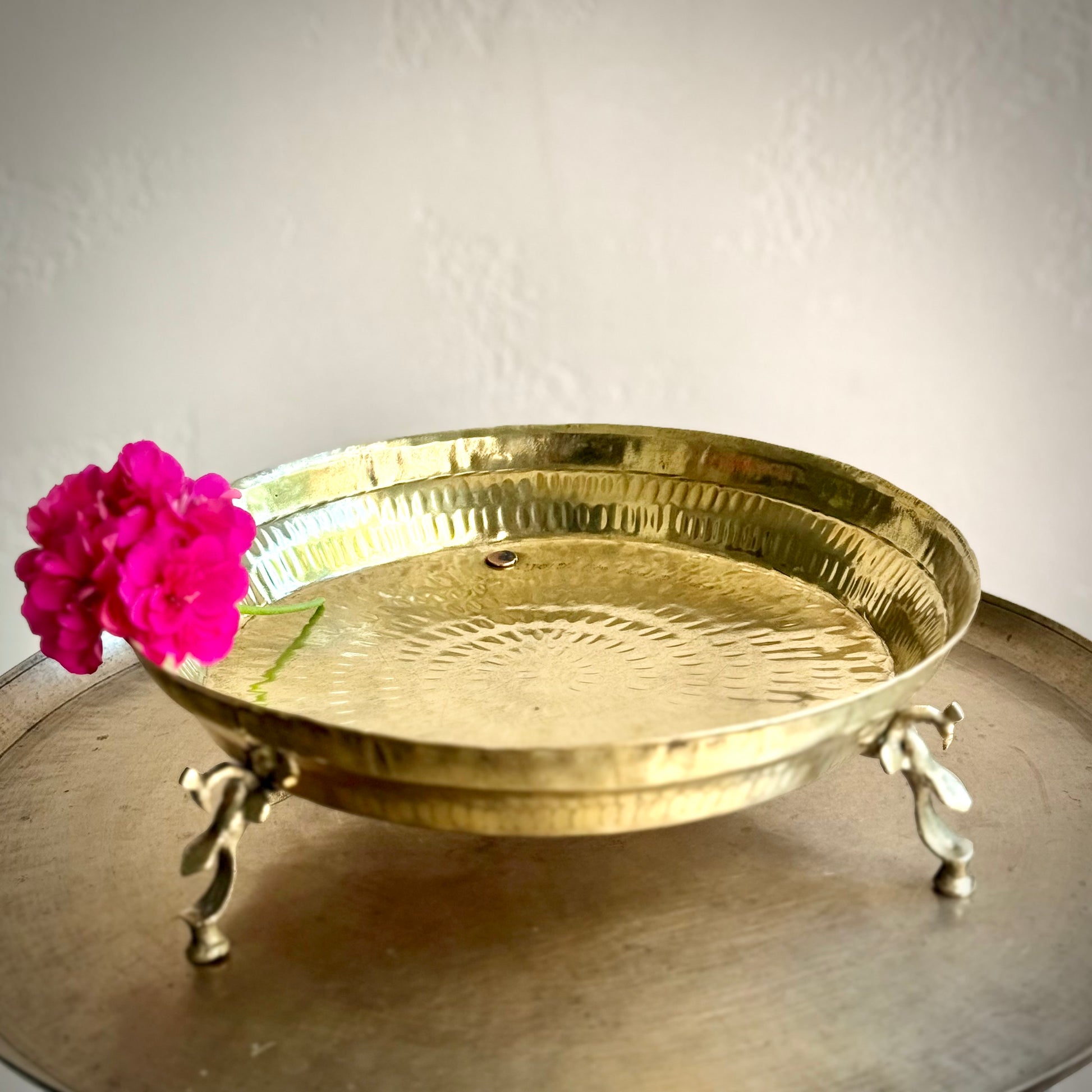 Immerse yourself in the timeless charm of the 70-year-old Urli – a brass bowl gracefully balanced on three peacock legs, seamlessly blending tradition and elegance. Rooted in South Indian heritage, the Urli, formerly a vessel for cooking and Ayurvedic preparations, has evolved into a decorative masterpiece. It adorns spaces with floating flowers, symbolizing daily rituals of auspiciousness. Adorned Urlis during festivals pay homage to tradition, ushering in positive energies. Elevate your space with the cultural richness and aesthetic allure of the Urli – a seamless blend of history and contemporary elegance.