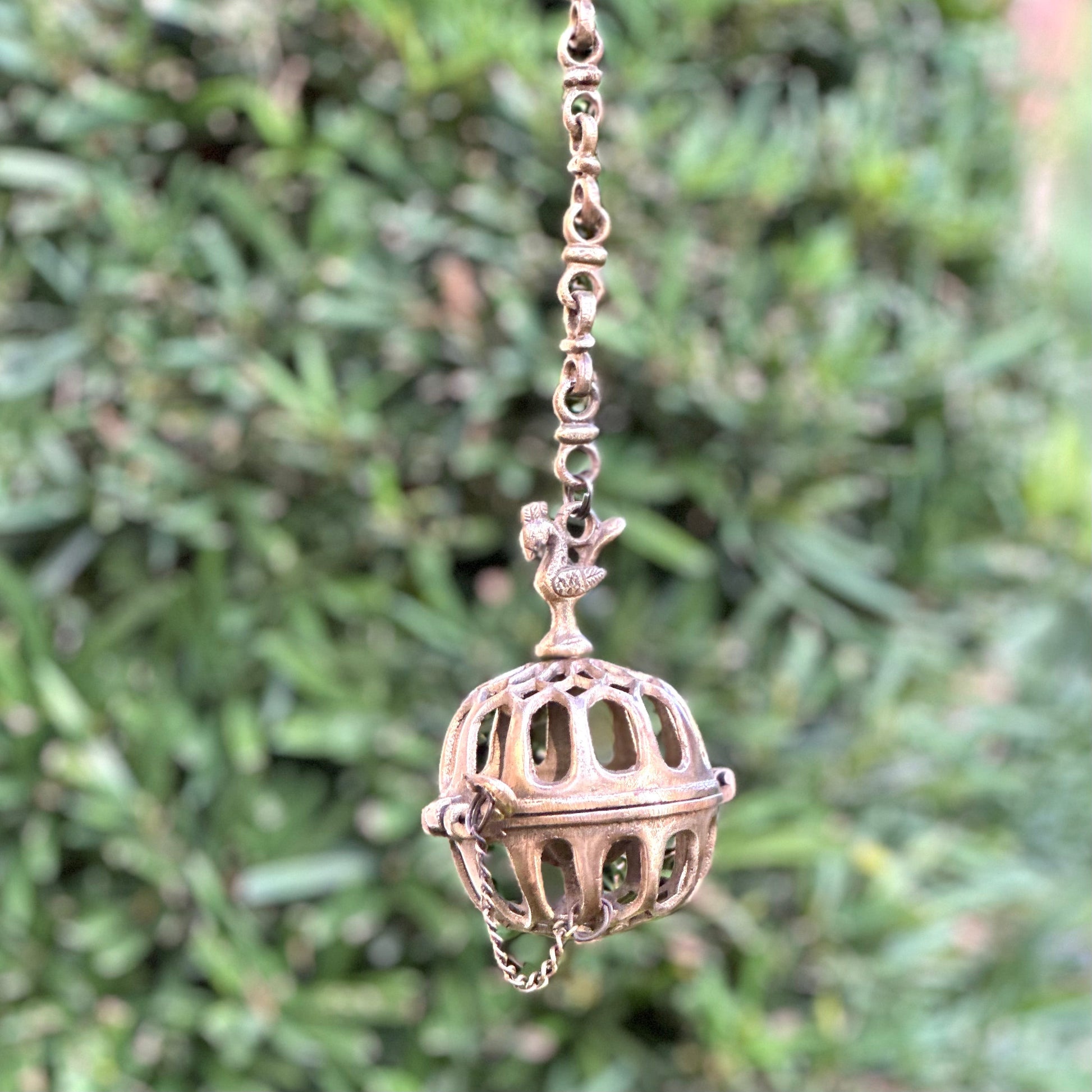 Brass Hanging Birdcage Incense Holder & Oil Lamp