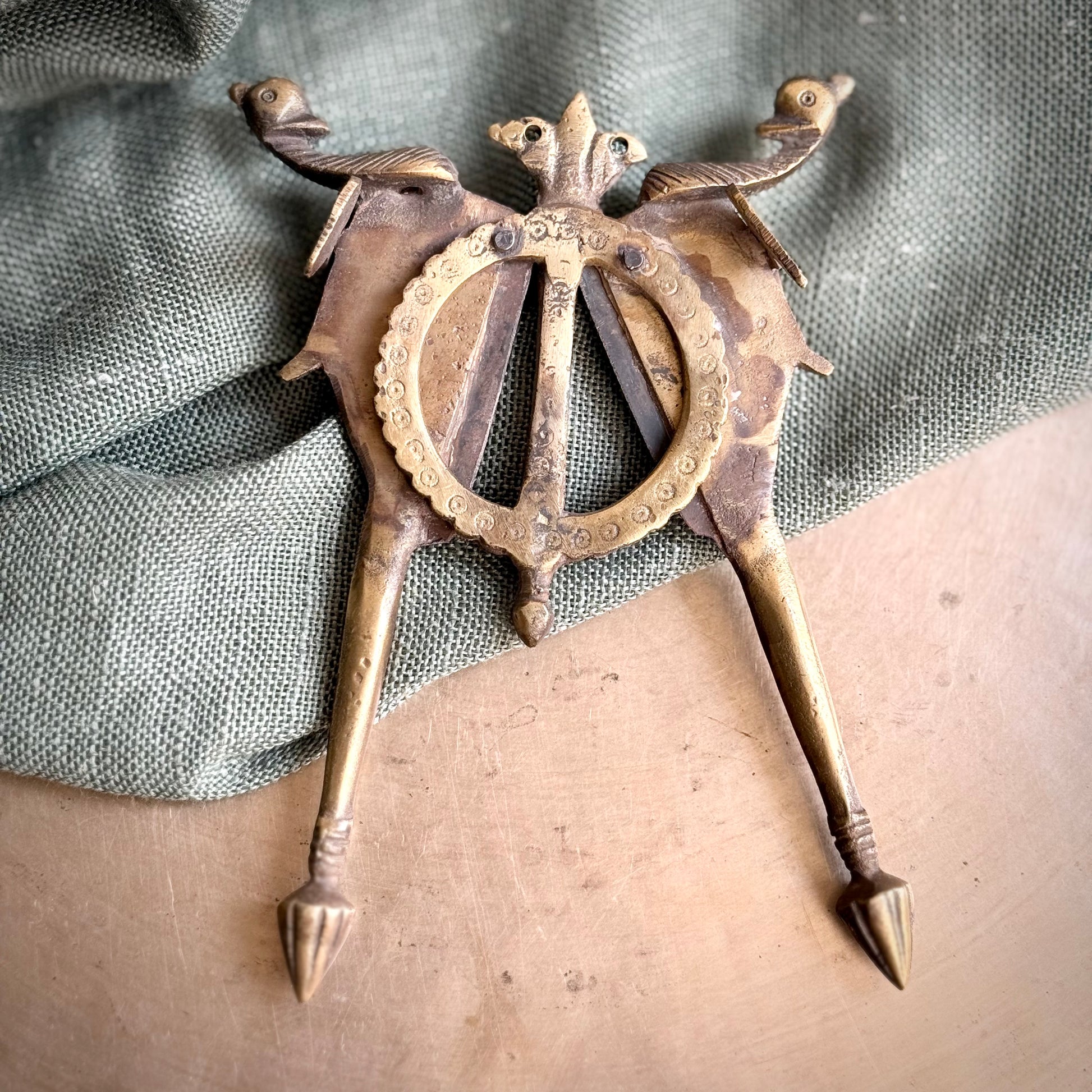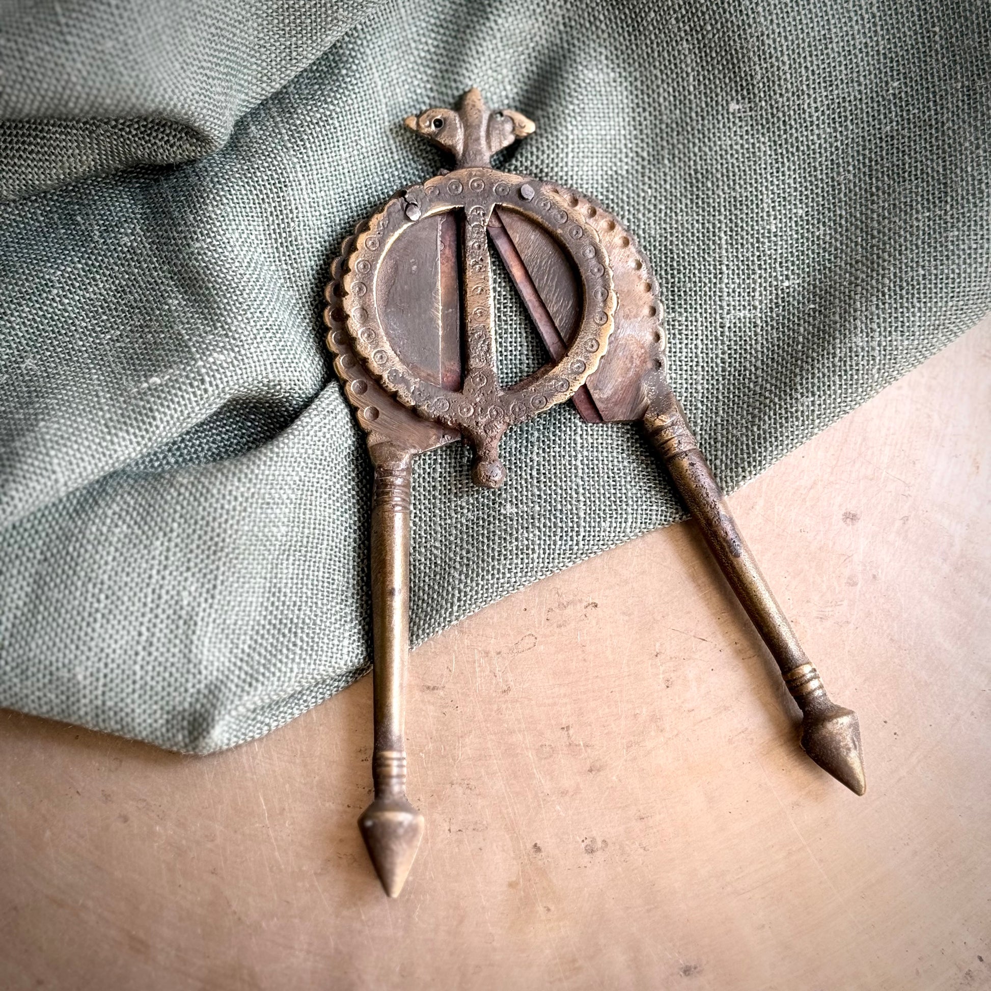 A striking collectible from India’s rich tradition of metalwork, these vintage brass nut cutters embody both utility and artistry in their design. Hand-forged with intricate detailing, each cutter features unique motifs and sculptural forms, making it as much a conversation piece as a functional tool.