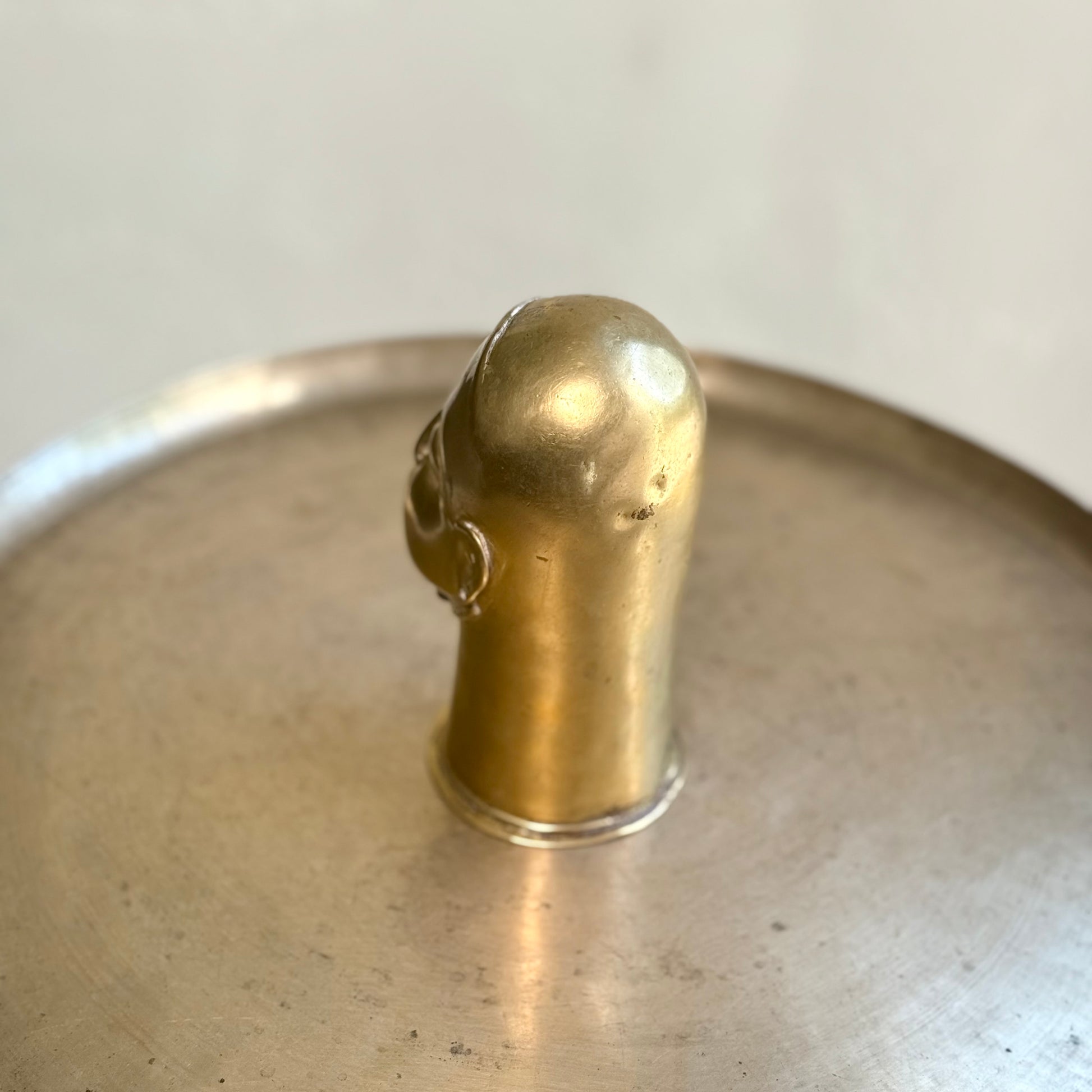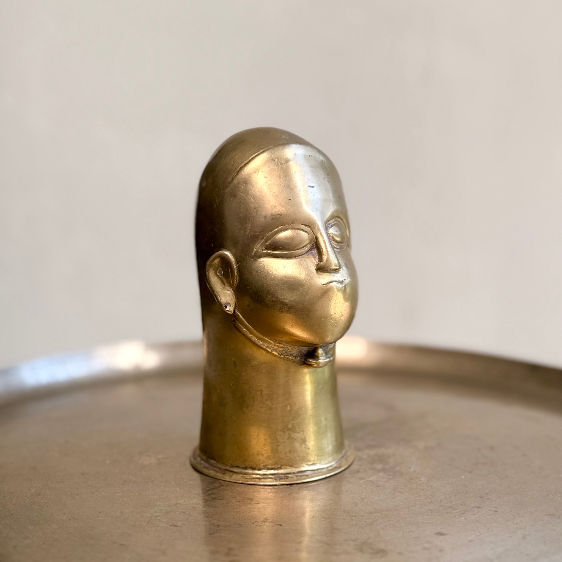 An exceptionally rare find — this vintage Shiva Mukhalingam dates back to the 18th or early 19th century and showcases a remarkably high-quality brass casting. The face of Lord Shiva is rendered with striking simplicity, featuring gently closed eyes and a serene expression that radiates quiet power.