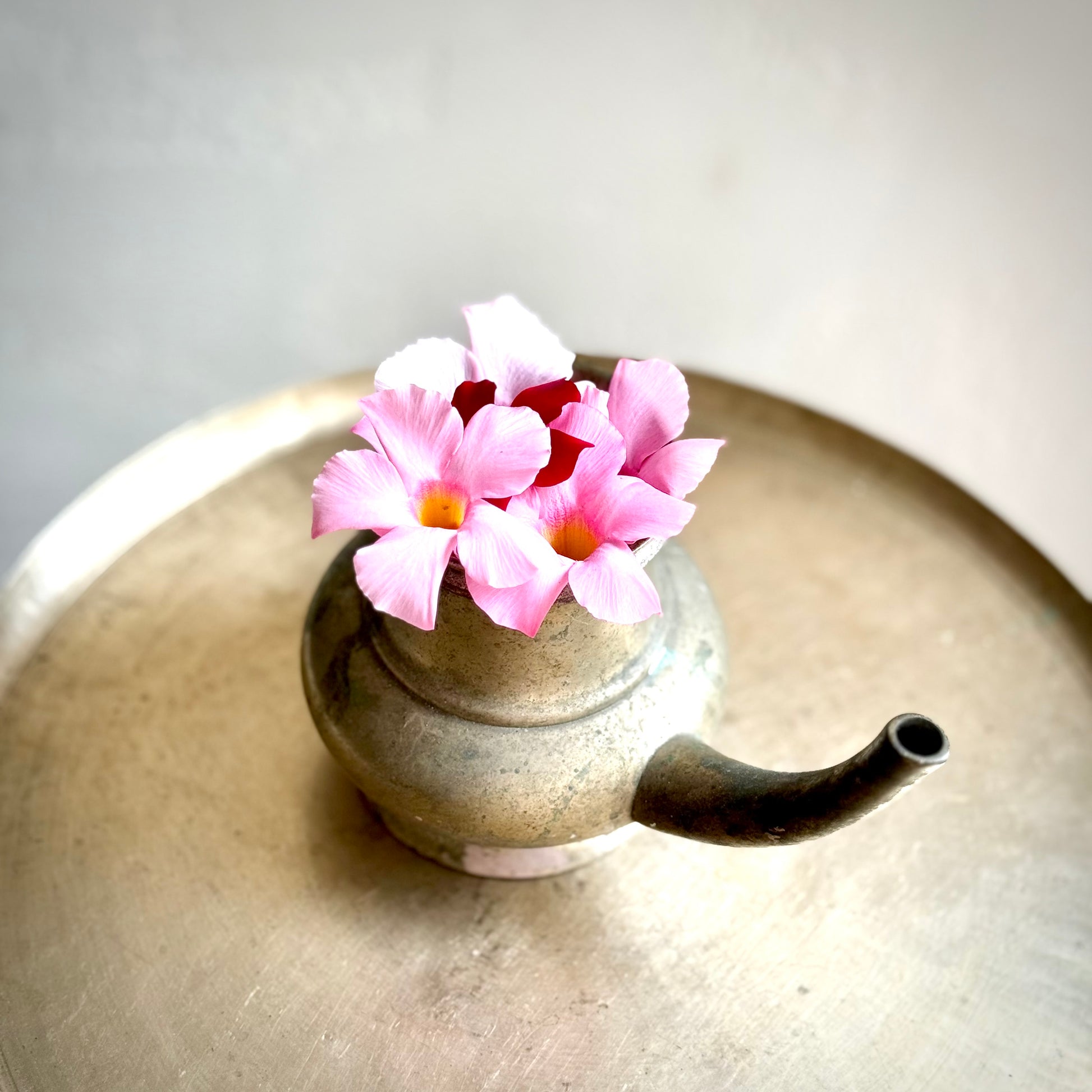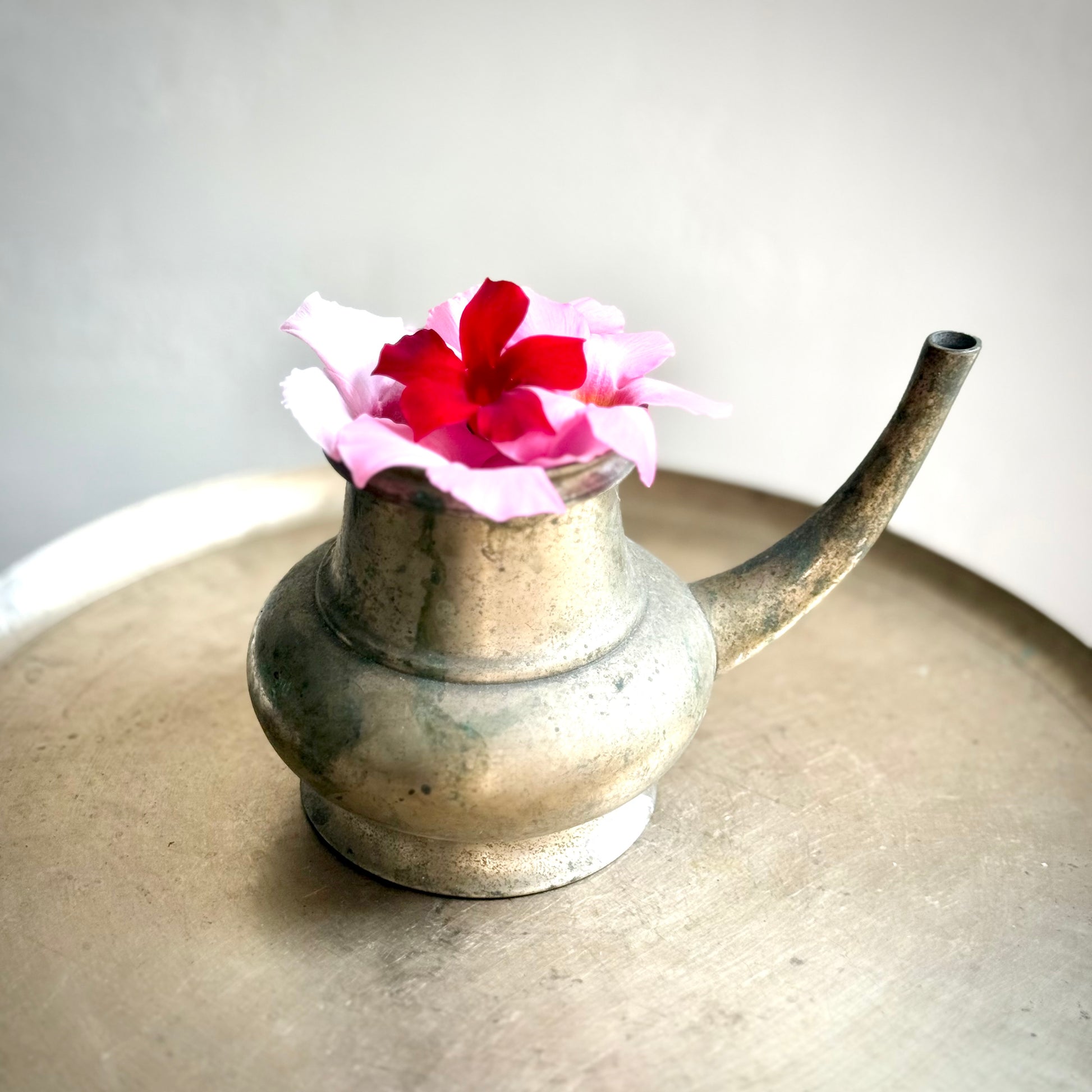 Explore the timeless elegance of this vintage bronze Kindi, a significant and symbolic piece in Hindu spirituality. Expertly handcrafted by artisans from South India, these Kindis are widely used in Kerala homes for dispensing holy water, carrying a rich history of nearly 60 years.