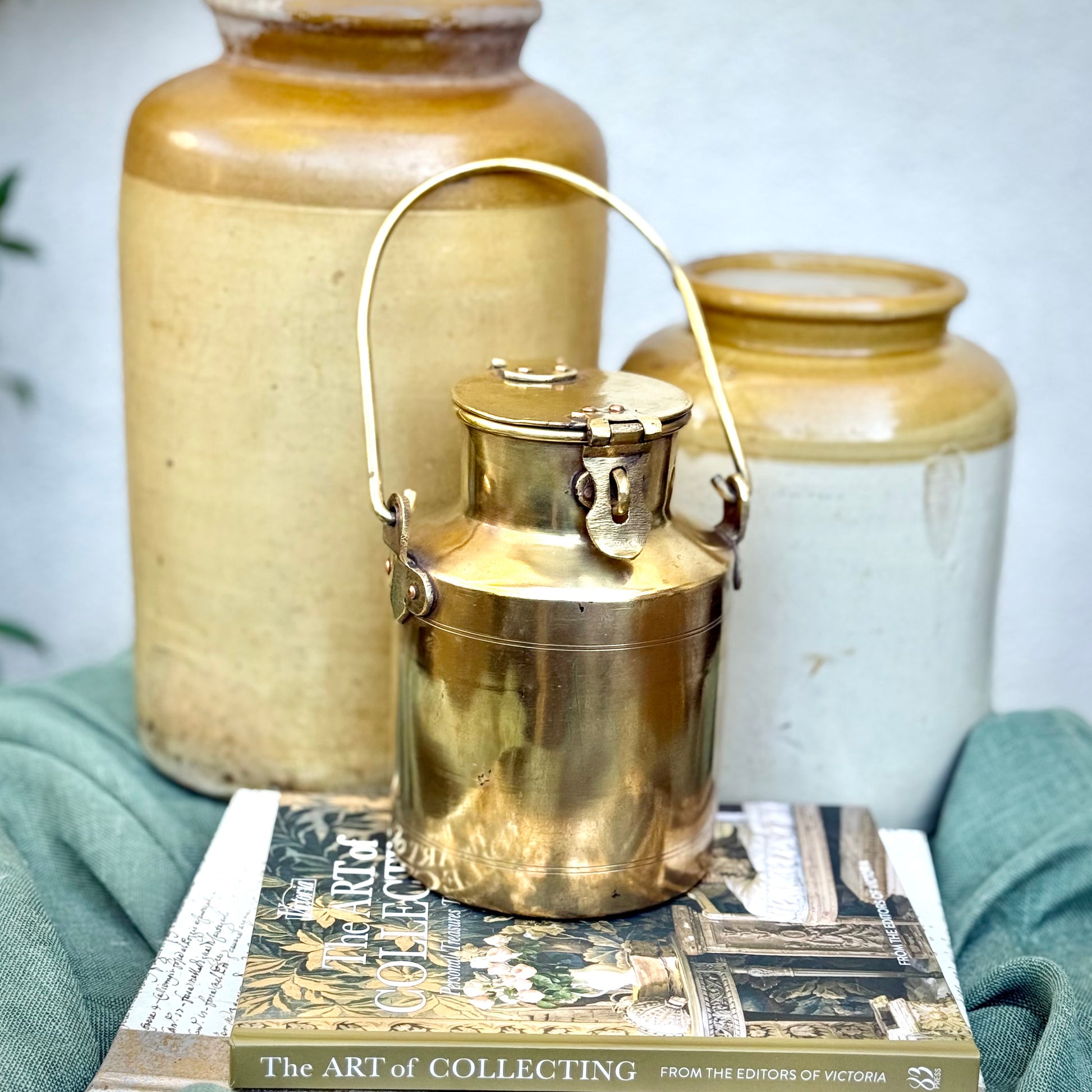 Today, this piece transcends its original purpose to become a sought-after collectible, perfect for those who appreciate rare artifacts with historical significance. Whether displayed as a decorative item or cherished as part of a curated collection, this brass milk can is a celebration of heritage and fine craftsmanship, making it a valuable addition to any home or collection.