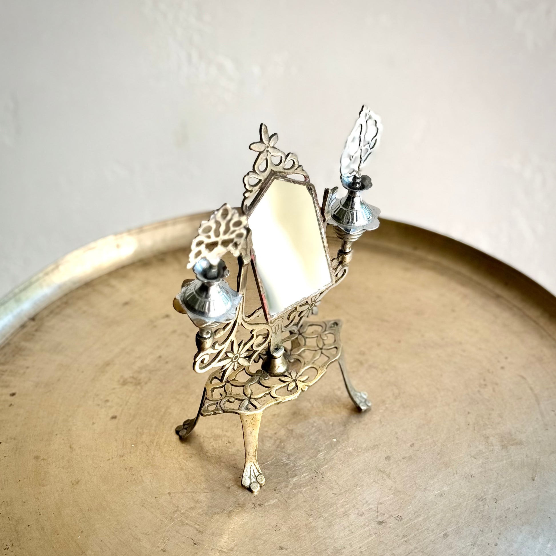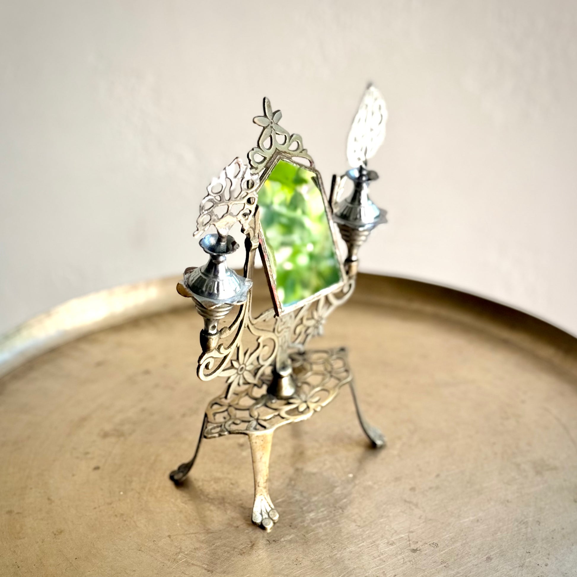 Its unique design resembles a miniature dressing table, complete with a charming mirror at the center, adding both aesthetic appeal and practicality. Every detail of this surmadani has been meticulously handcrafted, featuring intricate floral motifs that reflect the skill and artistry of its creators.